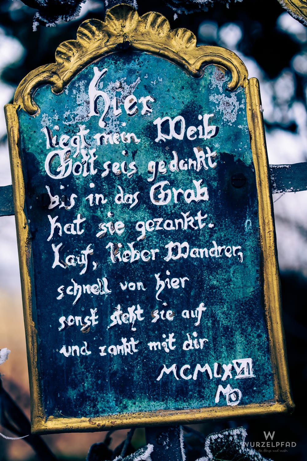 Apropos Gebein. Am Weg diese schöne Gedenktafel. Der arme Mann... 😢! Wir haben den Ratschlag jedenfalls befolgt, sicher ist sicher!